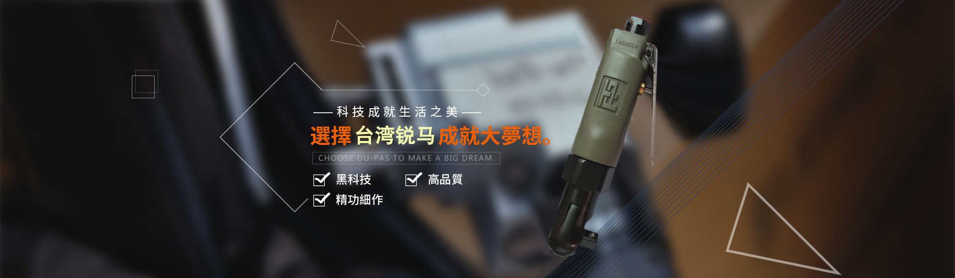 為給廣大客戶提供更加優(yōu)質(zhì)完善的服務(wù),臺灣銳馬氣動工具于2001年進(jìn)入中國大陸市場,并以100%臺灣原裝進(jìn)口氣動工具在大陸銷售銳馬、杜派氣動工具以及充電式電動工具。