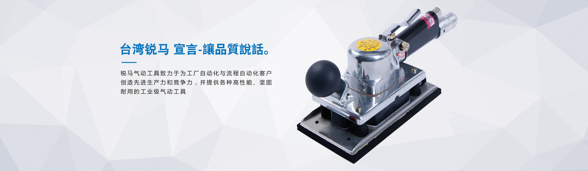 銳馬氣動工具廠家是臺灣專業(yè)制造氣動工具廠"筌誠機(jī)械工業(yè)",30多年來致力于氣動/電動工具領(lǐng)域之研發(fā),生產(chǎn)和銷售,努力提升本身產(chǎn)品價(jià)值,在臺灣氣動工具制造領(lǐng)域始終處于領(lǐng)先地位,并成功銷往國際市場。